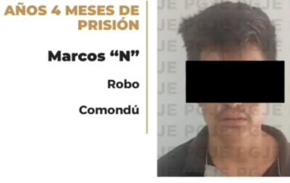 Un hombre identificado como Marcos Guadalupe “N” fue condenado a 3 años y 4 meses de prisión por el delito de robo...