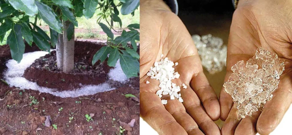 El polímero retiene hasta 400 veces su peso en agua y la libera solo cuando el cultivo lo requiere, lo que reduce el consumo hídrico en la agricultura entre un 50 y un 90 %.