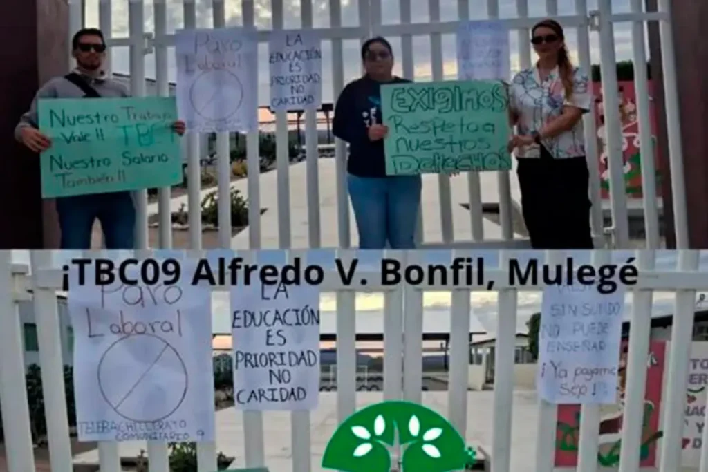 Desde el 16 de febrero de 2026, más de 160 maestros y trabajadores del Telebachillerato Comunitario iniciaron un paro laboral y hasta el momento mantienen un plantón indefinido en la explanada del Palacio de Gobierno del Estado, para exigir el pago de varias quincenas de salario que no les han sido pagadas.