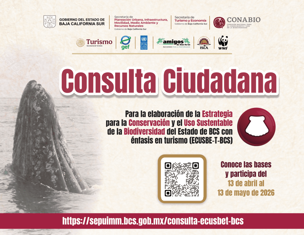 Con el propósito de fortalecer la protección de la biodiversidad en Baja California Sur, el Gobierno del Estado convoca a la ciudadanía a participar en un proceso de consulta pública para la construcción de una estrategia de conservación de los ecosistemas.