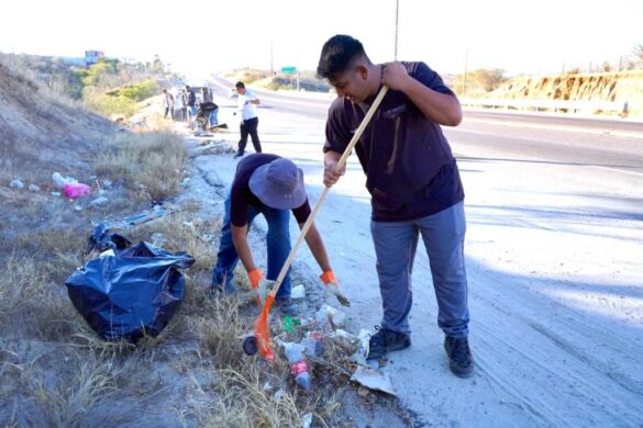 Realizan jornada de concientización y limpieza en carretera hacia Cabo San Lucas.