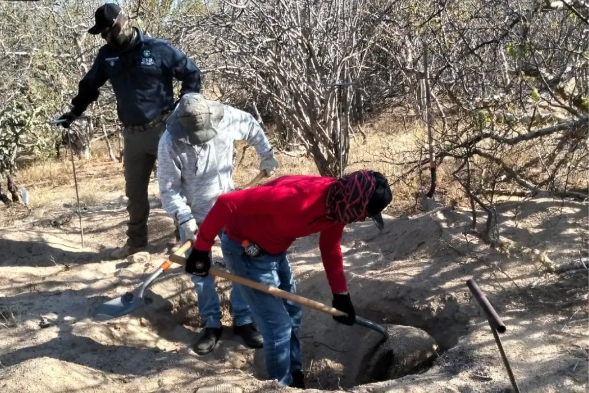 Colectivos y autoridades localizaron cuatro fosas clandestinas en El Cajoncito durante una jornada de búsqueda este domingo.