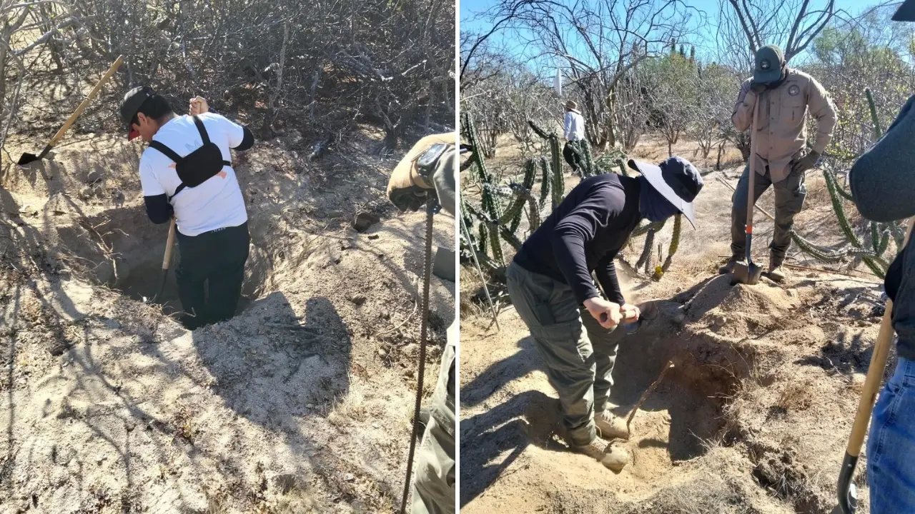 Un total de 10 osamentas humanas fueron localizadas en cinco fosas clandestinas en la zona de El Cajoncito, tras una jornada de búsqueda encabezada por el colectivo Búsqueda x La Paz en coordinación con autoridades.